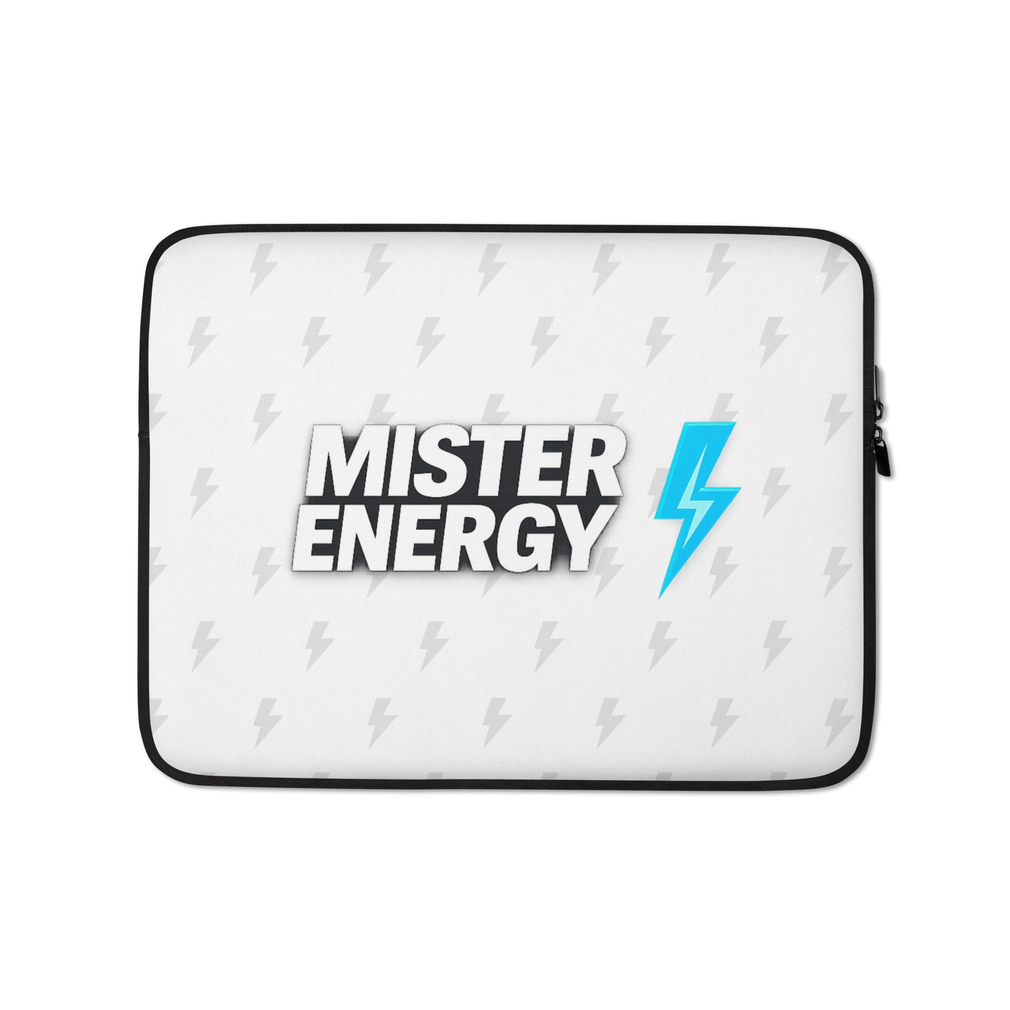 This lightweight laptop sleeve features the signature Mister Energy logo with a subtle all-over lightning bolt pattern for a clean, modern look. Designed to keep your device safe while making a statement wherever you work.